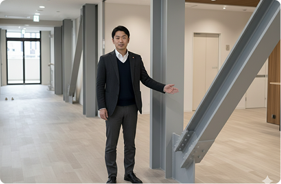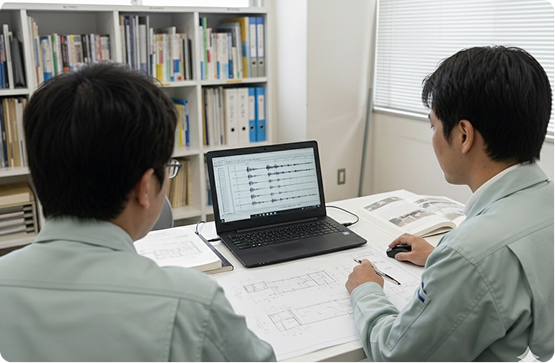 大切な資産と命を守るために。昭和56年以前の旧耐震基準の建物はもちろん、現行基準での不安を抱える建物に対しても、高度な解析技術を用いて精密な耐震診断を実施。建物の特性に合わせた最適な補強プランを策定します。